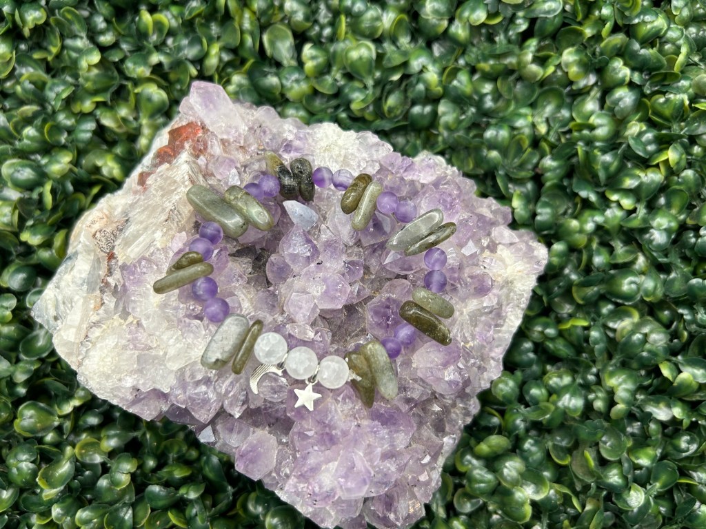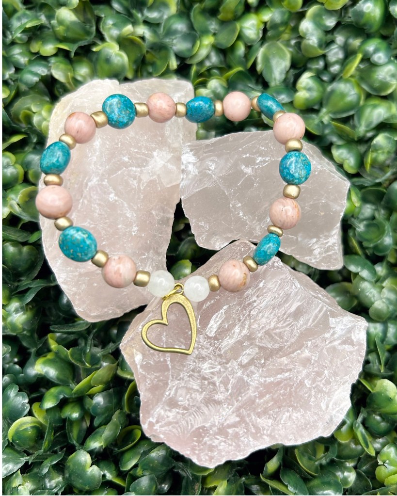 Every bracelet begins with gemstones that support the intention of the jar. As a gentle and beautiful reminder for you that you are a uniquely designed spirit, I do not repeat any designs–ever. When you place your order, I will create your bracelet intuitively. Because of my intention to design an experience for you that supports you specifically, I can only show you examples of bracelets I have already made. Yours will be made with the same love, intention, and quality as the ones I share as examples. Some have charms or accents and some do not!