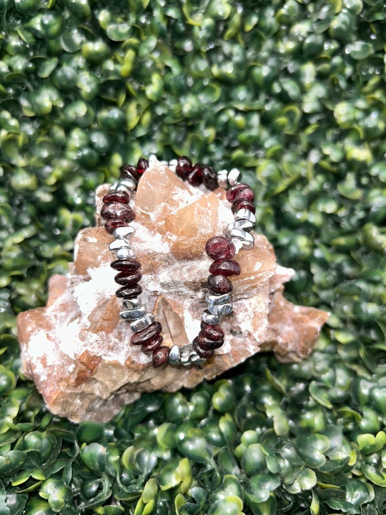 With every jar comes a handmade-by-me, unique bracelet using gemstone beads to support your intention. As you wear your bracelet, you can affirm your intention by repeating the mantra or phrase you used with your jar.